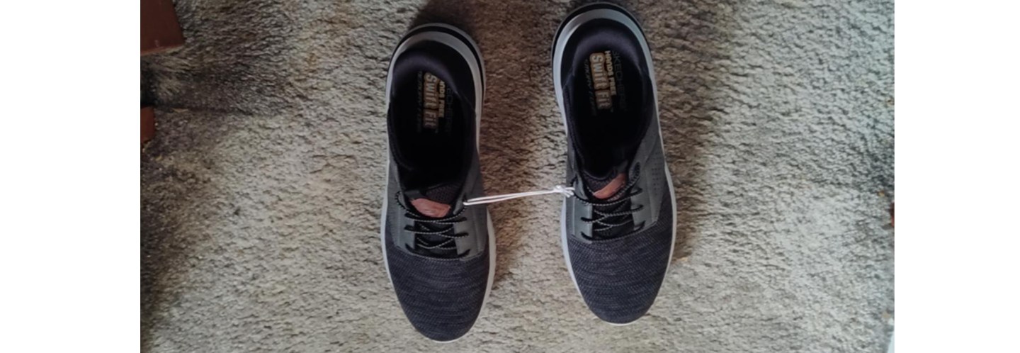 But there is one problem with them. There is this silly string that ties the shoes together. I am an old man, but now I have to walk like an old man. Yikes!
