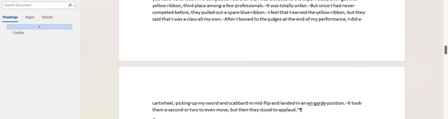 Note: In the image above, the two lines that slip to the beginning of the next page would be an “orphan” in type-setting terms if two lines were considered an orphan. Thus, more line would slip to the next page to protect the “orphan.” And this text is part of short story due to be published on this site later this month.